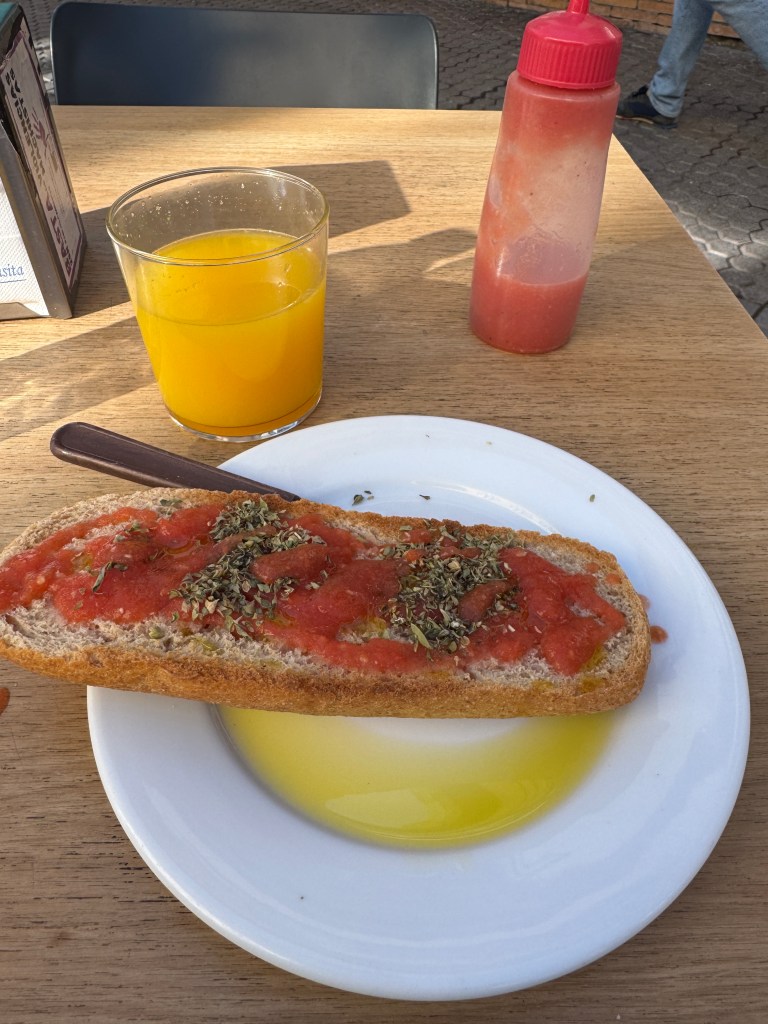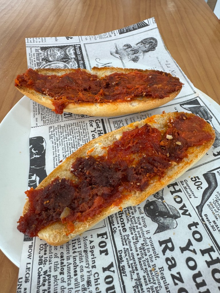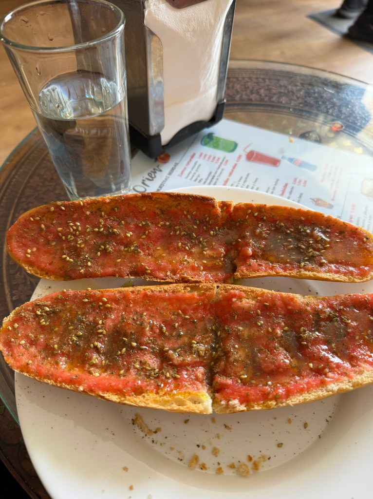 - tostada con tomate y aceite (toast with tomato sauce and olive oil)